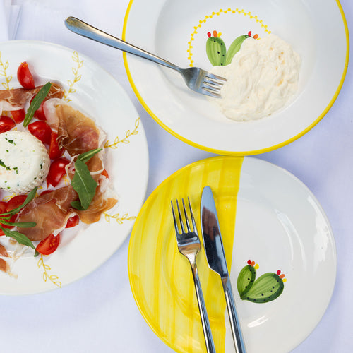 Piatto realizzato a mano da artigiani locali Pugliesi su disegni esclusivi dell’azienda Cibelle.