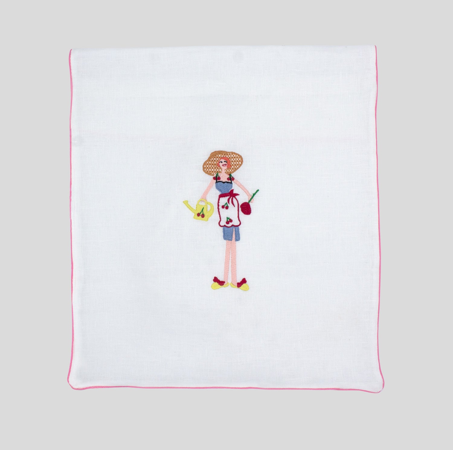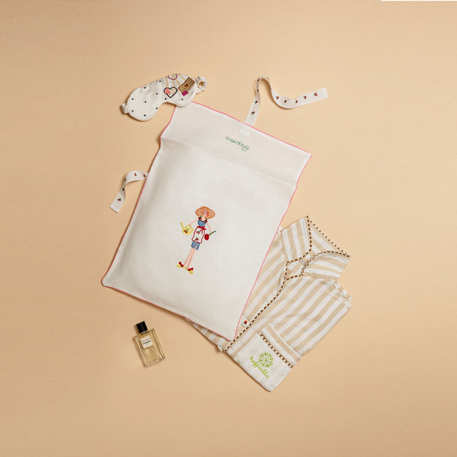 Travel Bag artigianale ricamata in Italia con cotone makò su misto lino. Cibelle azienda specializzata in tessile, dedica ai propri ricami molteplici ore di lavorazione per curare ogni dettaglio. Vi consigliamo di abbinare questa bag con i nostri Sacchetto Zucchero Filato