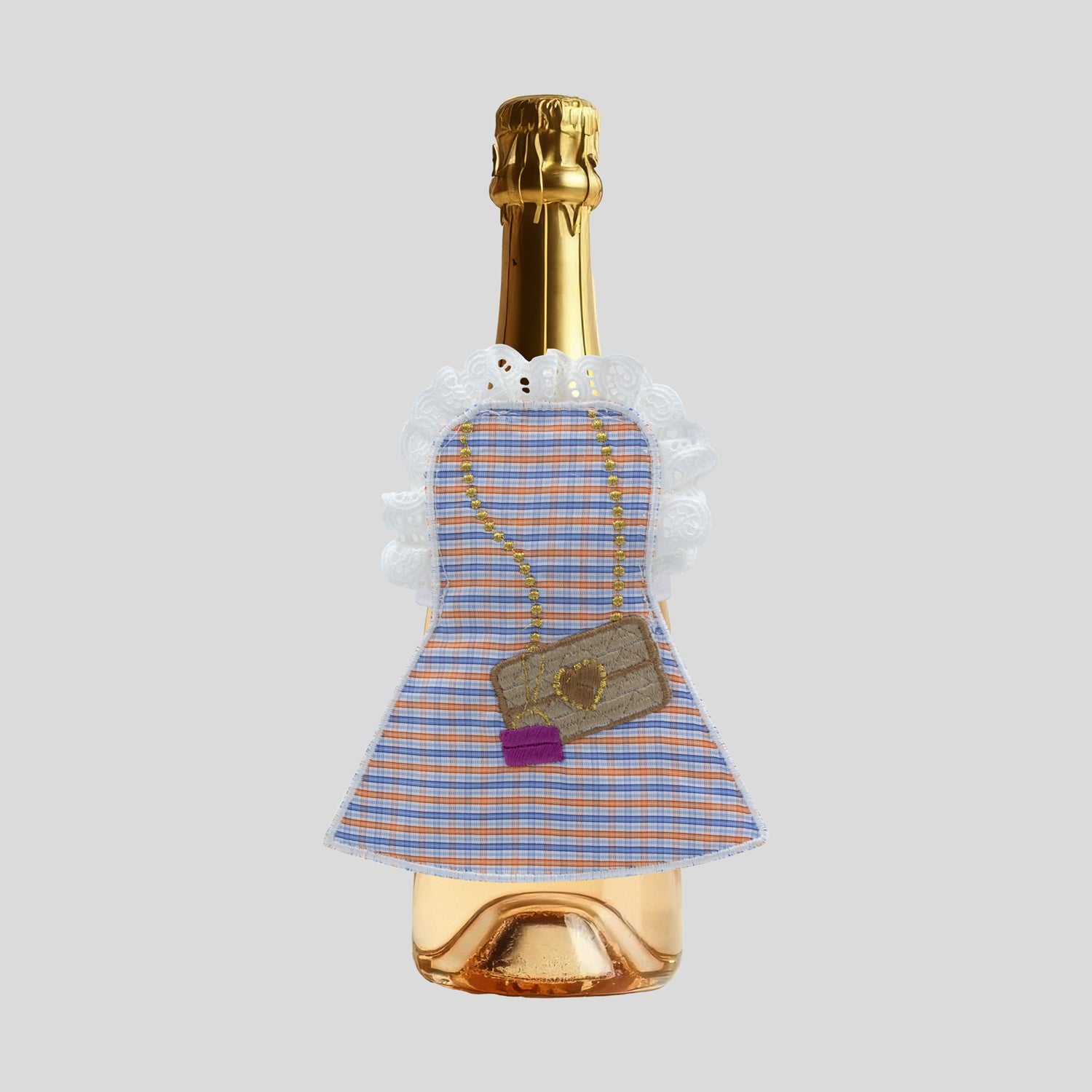 Copribottiglia artigianale ricamato in Italia con cotone makò su misto lino. Cibelle azienda specializzata in tessile per la tavola, dedica ai propri tessili molteplici ore di lavorazione per curare ogni dettaglio.